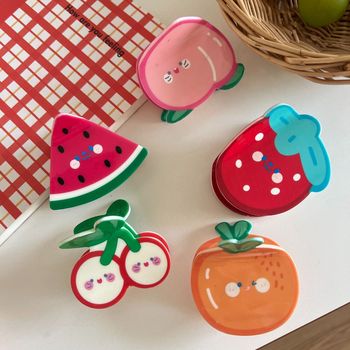Cute Fruit Watermelon Lemon Strawberry Orange Grab Hair Clamps for Girls Acrylic Ponytail Hair Clips