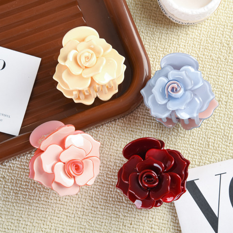 Romantic Pink Red Blue 3D Rose Shark Hair Claws Sweet Flower Acetate Hair Clips for Girls Women Party Gifts
