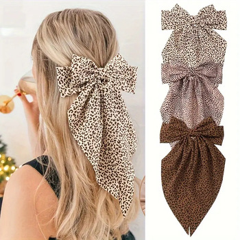 Accesorios para el cabello para mujer American Retro Leopard Print Ribbon Horquilla Lazo de gran tamaño Pinzas para el cabello grandes