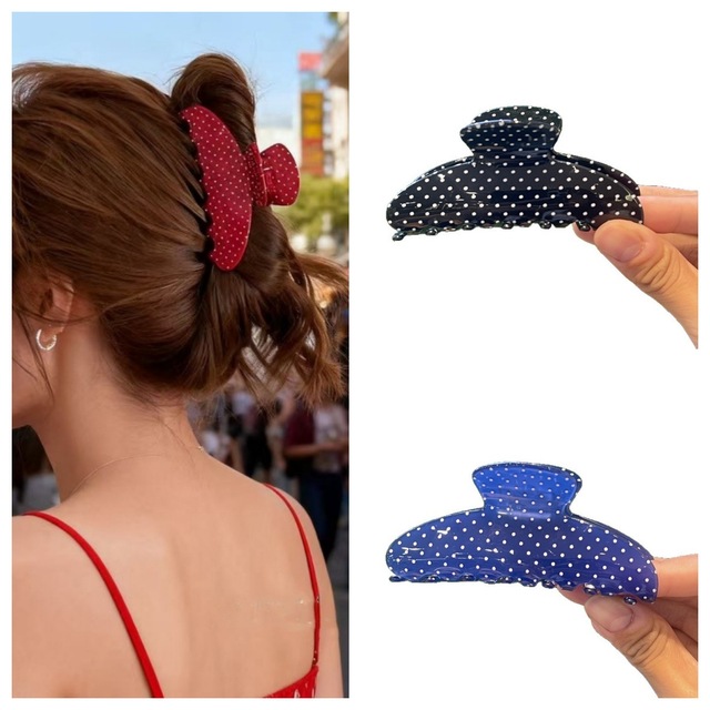 French Vintage Polka Dots Plastic Hair Claws Elegant Large 10CM Red Black Blue Hair Clamps for Women
